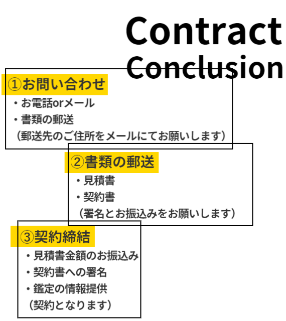 - 協議の上の鑑定料金・出張費・交通費以外に、追加料金は頂きません。
