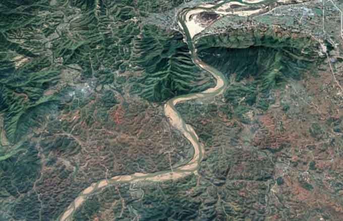 有名な、香港の『回顧顧祖』の地形です。香港のある九龍半島は、山脈にうまく囲まれるように水(平地)が存在しています。風水で良いとされる典型的な巒頭の観点からみた吉相です。龍脈(山脈)が幾層も連なり、大きな気を運びます。気のエネルギーは運ばれる方向からの力がと良ければ強いほどいいのです。いい風と保護構造を持つ最高の例です。香港の発展は、この龍穴(エネルギースポット)の保護構造によるモノであると、巒頭風水的な観点かでもはっきりと証明出来るのです。