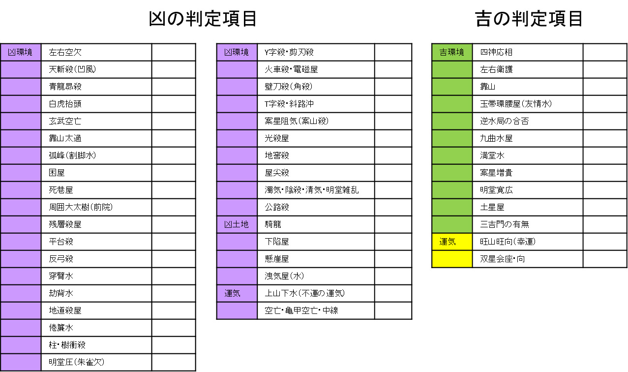 幸運が入り易い土地・金運の強い土地・不運になり易い土地。